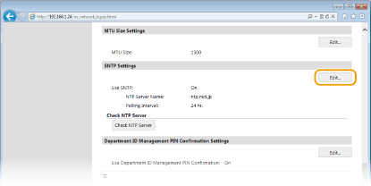 To Απλό πρωτόκολλο ώρας δικτύου (SNTP) σάς επιτρέπει να ρυθμίζετε το ρολόι του συστήματος χρησιμοποιώντας το διακομιστή ώρας στο δίκτυο. Αυτό το πρωτόκολλο χρησιμοποιείται συνήθως για το συγχρονισμό του μηχανήματος και ενός διακομιστή, όπως στην περίπτωση που το μηχάνημα πρέπει να προσπελάσει ένα διακομιστή LDAP με ενεργοποιημένη την πιστοποίηση ασφαλείας. Η ώρα συγχρονίζεται με βάση τη Συντονισμένη Παγκόσμια Ώρα (UTC), γι' αυτό καθορίστε τη ρύθμιση ζώνης ώρας προτού διαμορφώσετε το SNTP (Ρυθμίσεις Ημερομηνίας/Ώρας). Οι ρυθμίσεις SNTP καθορίζονται μέσω του Remote UI (Απομακρυσμένο περιβάλλον εργασίας).
