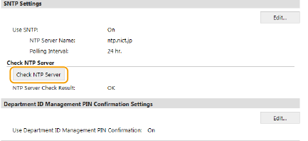 Το SNTP του μηχανήματος υποστηρίζει διακομιστές NTP (έκδοση 3) και διακομιστές SNTP (εκδόσεις 3 και 4).