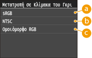 Μπορείτε να επιλέξετε τον τρόπο μετατροπής των τιμών των χρωμάτων σε τιμές κλίμακας του γκρι, κατά την εκτύπωση έγχρωμων δεδομένων.