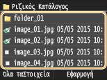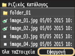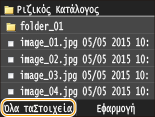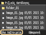 ![]() ![]() Εάν επιλέξετε <Ημ/νία/Ώρα (Αύξουσα)> ή <Ημ/νία/Ώρα (Φθίνουσα)>, τα αρχεία ταξινομούνται βάσει των ημερομηνιών και της ώρας τροποποίησης των αρχείων.