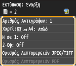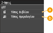 ![]() <2-Όψεις> ενδέχεται να μην είναι διαθέσιμη για ορισμένα μεγέθη ή τύπους χαρτιών. Χαρτί