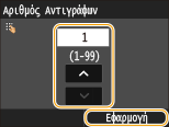 ή χρησιμοποιήστε τα αριθμητικά πλήκτρα για να εισαγάγετε μια τιμή και έπειτα πατήστε <Εφαρμογή>.