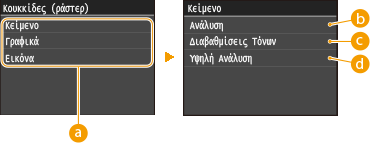 Μπορείτε να επιλέξετε τύπο πρωτοτύπου ανάλογα με την εικόνα που θέλετε να εκτυπώσετε. Επιλέξτε <Προτεραιότητα Φωτογραφίας> ή <Προτεραιότητα Κειμένου>.