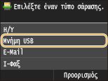 Τα σαρωμένα δεδομένα αποθηκεύονται στη συσκευή μνήμης USB.