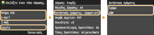Επιλέξτε <Μνήμη USB> ή καθορίστε προορισμό στο <E-Mail>/<Αρχείο>