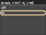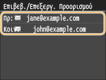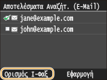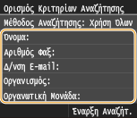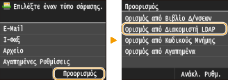 Αν στο γραφείο σας υπάρχει εγκατεστημένος διακομιστής LDAP, μπορείτε να καθορίσετε έναν προορισμό χρησιμοποιώντας τα στοιχεία χρήστη στον διακομιστή. Προσπελάστε τον διακομιστή LDAP μέσω της συσκευής για να αναζητήσετε τα κατάλληλα στοιχεία χρήστη και να τα καθορίσετε ως προορισμό.