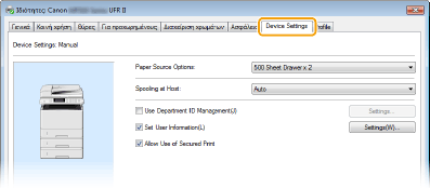 Επιλέξτε το πλαίσιο ελέγχου για να εμφανίζεται η αναδυόμενη οθόνη [Confirm Department ID/PIN] (Επιβεβαίωση PIN/κωδικού τμήματος) κάθε φορά που εκτυπώνετε ή στέλνετε φαξ από υπολογιστή. [Authenticate Department ID/PIN at Device] (Πιστοποίηση PIN/κωδικού τμήματος στη συσκευή)
