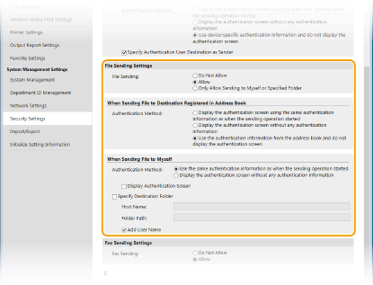 Όταν έχετε επιλέξει [Only Allow Sending to Myself or Specified Folder] για τη ρύθμιση [File Sending]