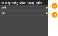 Εάν περιορίσετε τους αριθμούς φαξ που μπορείτε να καθορίσετε κατά την αποστολή των εγγράφων σε αυτούς που είναι ήδη καταχωρισμένοι στο Βιβλίο διευθύνσεων, αυτούς που χρησιμοποιήθηκαν προηγουμένως ή αυτούς που μπορείτε να αναζητήσετε σε διακομιστές LDAP, μπορείτε να μειώσετε την πιθανότητα καθορισμού λανθασμένων προορισμών και να αποτρέψετε τη διαρροή πληροφοριών από χρήστες. Όταν η λειτουργία αυτή είναι ενεργοποιημένη, το μηχάνημα δεν επιτρέπει στους χρήστες την εισαγωγή προορισμών με τη χρήση των αριθμητικών πλήκτρων, την προσθήκη νέων καταχωρίσεων στο βιβλίο διευθύνσεων και την επεξεργασία των υπαρχουσών καταχωρίσεων στο βιβλίο διευθύνσεων.