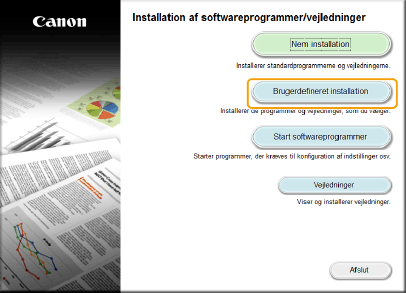 Hvis [Automatisk afspilning] vises, skal du klikke på [Kør MInst.exe].