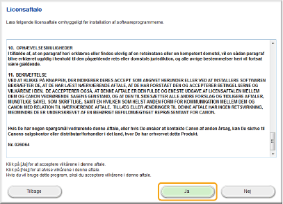 Læs licensaftalen, og klik på [Ja] for at acceptere.