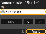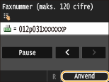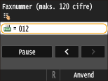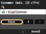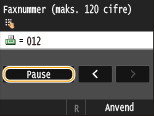 Tryk på <Pause> for at indsætte en pause efter faxnummeret, hvis det er nødvendigt.