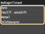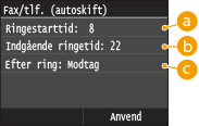 Du kan indstille maskinen til automatisk at modtage faxbeskeder, når et indgående opkald ringer inden for en angiven tidsramme. Skift til automatisk modtagelse