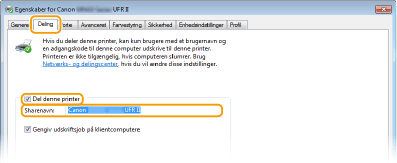 Sådan udføres administration af afdelings-id ved hjælp af en printserver"Canon Driver Information Assist Service" skal tilføjes under installationen af printerdriveren. Du kan flere oplysninger under "MF Driver Installation Guide (Installationsvejledning til MF-drivere)".