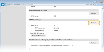 Maskinens SNTP understøtter både NTP- (version 3) og SNTP-servere (version 3 og 4).
