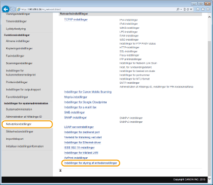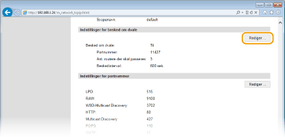 Indstillinger for dedikeret port Overvågning og styring af maskinen med SNMP |