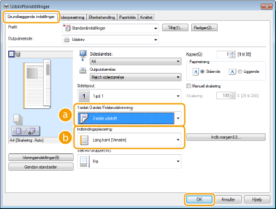 Du kan lave både 1-sidede og 2-sidede udskrifter. Standardindstillingen er [2-sidet udskrift]. Rediger indstillingen efter behov.