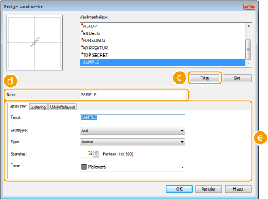 Viser skærmen for oprettelse eller redigering af vandmærker.