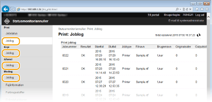 Uanset indstillingen for styring af afdelings-id'er vises alle dokumenter til udskrivning, der i øjeblikket udskrives eller venter på at blive udskrevet.