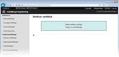 Kontroller certifikatets detaljer, og klik på [Verificer certifikat].