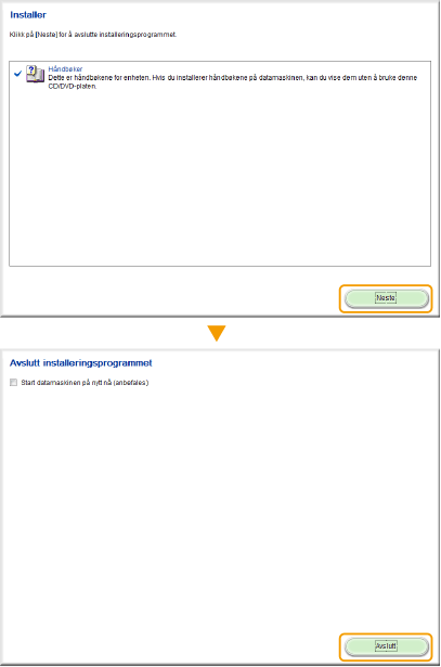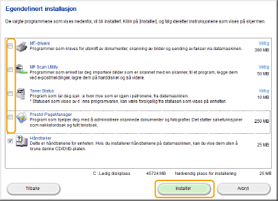 Fjern merket i alle avmerkingsbokser bortsett fra [Håndbøker], og klikk på [Installer].