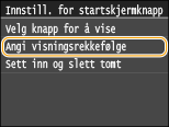 Hvis Hjem-skjermbildet er fullt og det ikke er mulig å lagre flere innstillinger, slett lagrede knapper og tomrom i <Innst. for startskjerm>.
