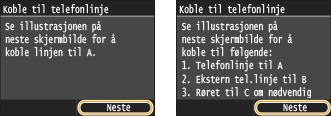 Trykk på <Neste> etter at telefonlinjen har blitt koblet til.