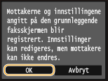 For å endre eller slette registrerte innstillinger, går du til <Faks>  <Favorittinnstillinger>  <Rediger/slett>  <Rediger> eller <Slett>, og deretter følger du trinnene nedenfor.