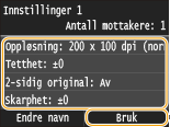 Sjekk detaljene for innstillingen som skal lagres og trykk på <Bruk>.