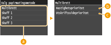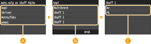 ). Automatisk skuffevalg er alltid aktivert for utskrift på papir som mates fra flerfunksjonsskuffen.