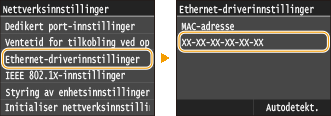 Det kan oppstå tilkoblingsfeil hvis du kobler maskinen til en svitsjehub eller en bro, selv om IP-adressen er riktig konfigurert. Dette problemet kan løses ved å angi et visst intervall før maskinen begynner å kommunisere. Angi en ventetid for å koble til et nettverk
