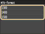 På de fleste Ethernet-nettverk er 1500 byte den maksimale størrelsen på en pakke som kan sendes. En pakke henviser til en bunke med data som de opprinnelige dataene deles opp i, før de sendes. MTU kan variere fra nettverk til nettverk. Endre innstillingene på maskinen etter behov. Kontakt nettverksadministratoren for mer informasjon.