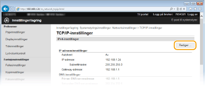 Klikk på [Rediger] i [IPv4-innstillinger].