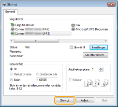 Trykk eller klikk på [Enheter] [Skriv ut] skriverdriveren for denne maskinen [Skriv ut].Hvis du skriver ut ved hjelp av denne metoden, er kun et begrenset utvalg av utskriftsinnstillinger tilgjengelig.