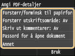 Du kan skrive ut passordbeskyttede PDF-filer ved å taste inn passordet som kreves for å åpne dem.