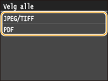 Trykk på <JPEG/TIFF> eller <PDF>.