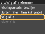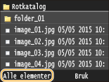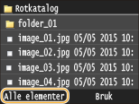 ![]() ![]() Hvis du valgte en fil før du trykket <Alle elementer>, kan du bare velge filer med samme format.