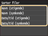 ![]() ![]() Når du velger <Dato/tid (stigende)> eller <Dato/tid (synkende)>, sorteres filer basert på endringsdatoene og tiden til filene.