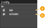 ![]() <2-sidig> er kanskje ikke tilgjengelig med noen formater eller typer papir. Papir