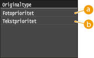 Du kan velge type original avhengig av bildet som skal skrives ut. Velg <Fotoprioritet> eller <Tekstprioritet>.