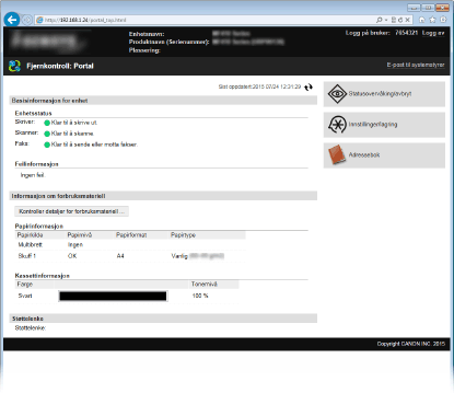 Skriv inn "http://<IP-adressen til maskinen>/" i adressefeltet og trykk på [ENTER]-tasten.