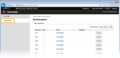 Du kan slette en registrert destinasjon ved å klikke på den tilsvarende [Slett]-knappen.
