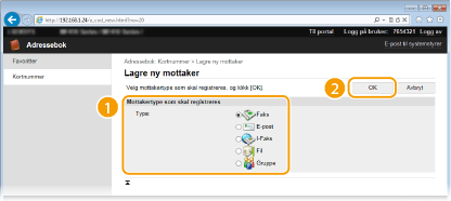 Velg [Mottakertype som skal registreres], og klikk på [OK].