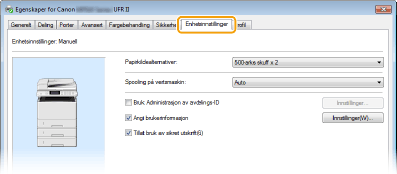 Merk av i boksen [Bruk Administrasjon av avdelings-ID]. Faksdriver