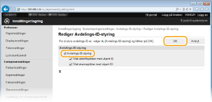 Aktiver funksjonen avdelings-ID-styring.