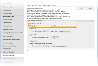 Merk av for [Bruk TTLS] eller [Bruk PEAP].