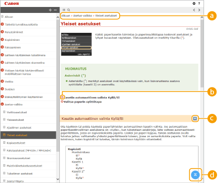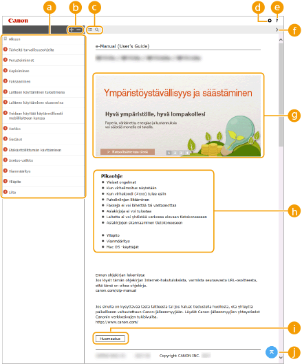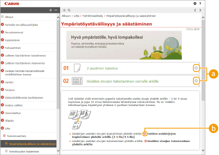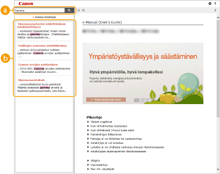 Napsauta tätä, kun haluat näyttää tiedot Sähköinen opas-ohjeen tarkastelemisesta ja hakujen tekemisestä ja muita tietoja.
