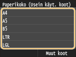 Jos lisätyn paperin kokoa ei näytetä, napauta kohtaa <Muut koot>.