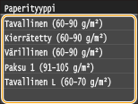 Valitse paperityyppi.