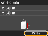 Syötä <Y>-sivun pituus ja napauta kohtaa <Käytä>.